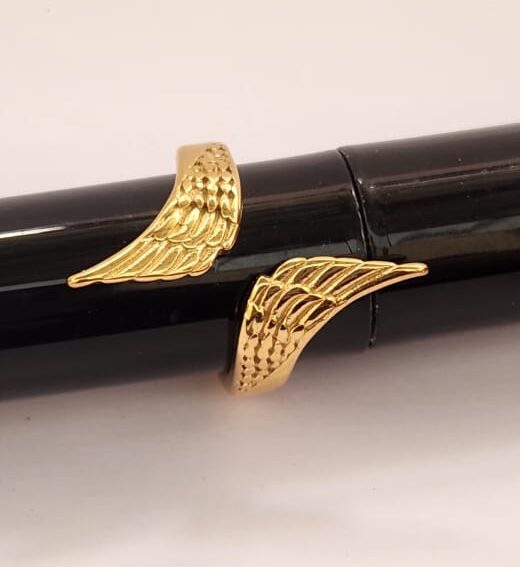 A sleek open ring featuring elegant golden angel wings. Lightweight and stylish, perfect for daily wear and gifting.