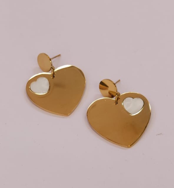 From Nishaya, chic gold-plated heart drop earrings with a white heart detail, designed to add charm and elegance to your look.