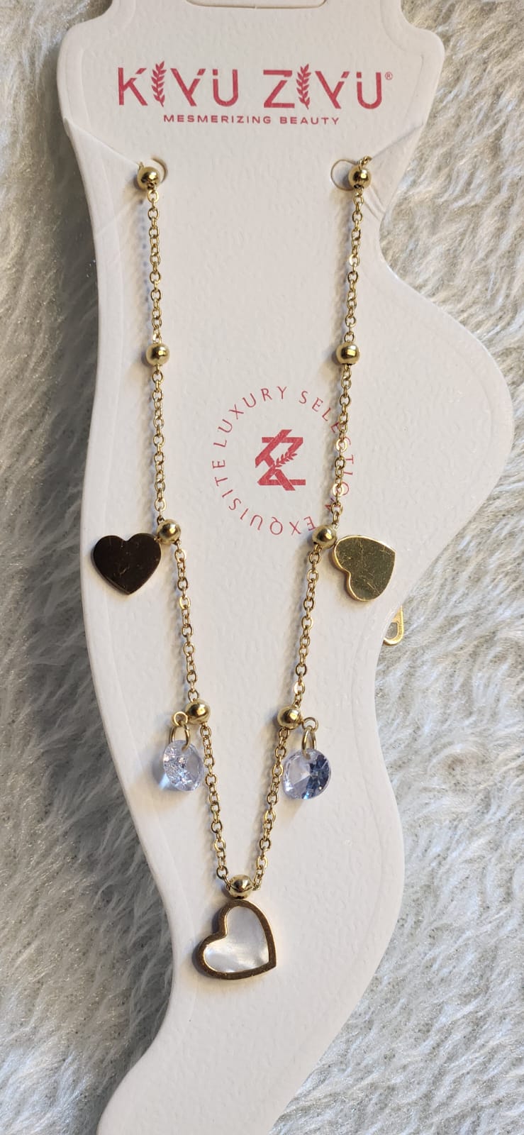 Elegant heart charms paired with light blue crystals, giving a subtle sparkle that complements your every step beautifully.
