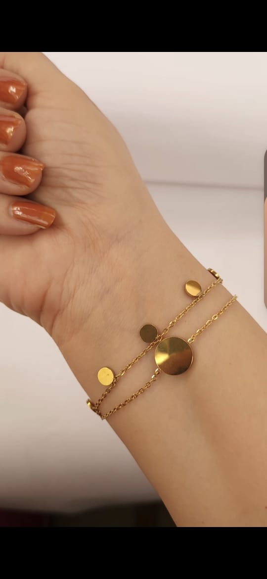 Introducing Nishaya’s Reversible Double Chain Bracelet – a perfect fusion of elegance and versatility. Crafted with delicate golden chains adorned with disc charms, this bracelet is designed to complement every mood and outfit.